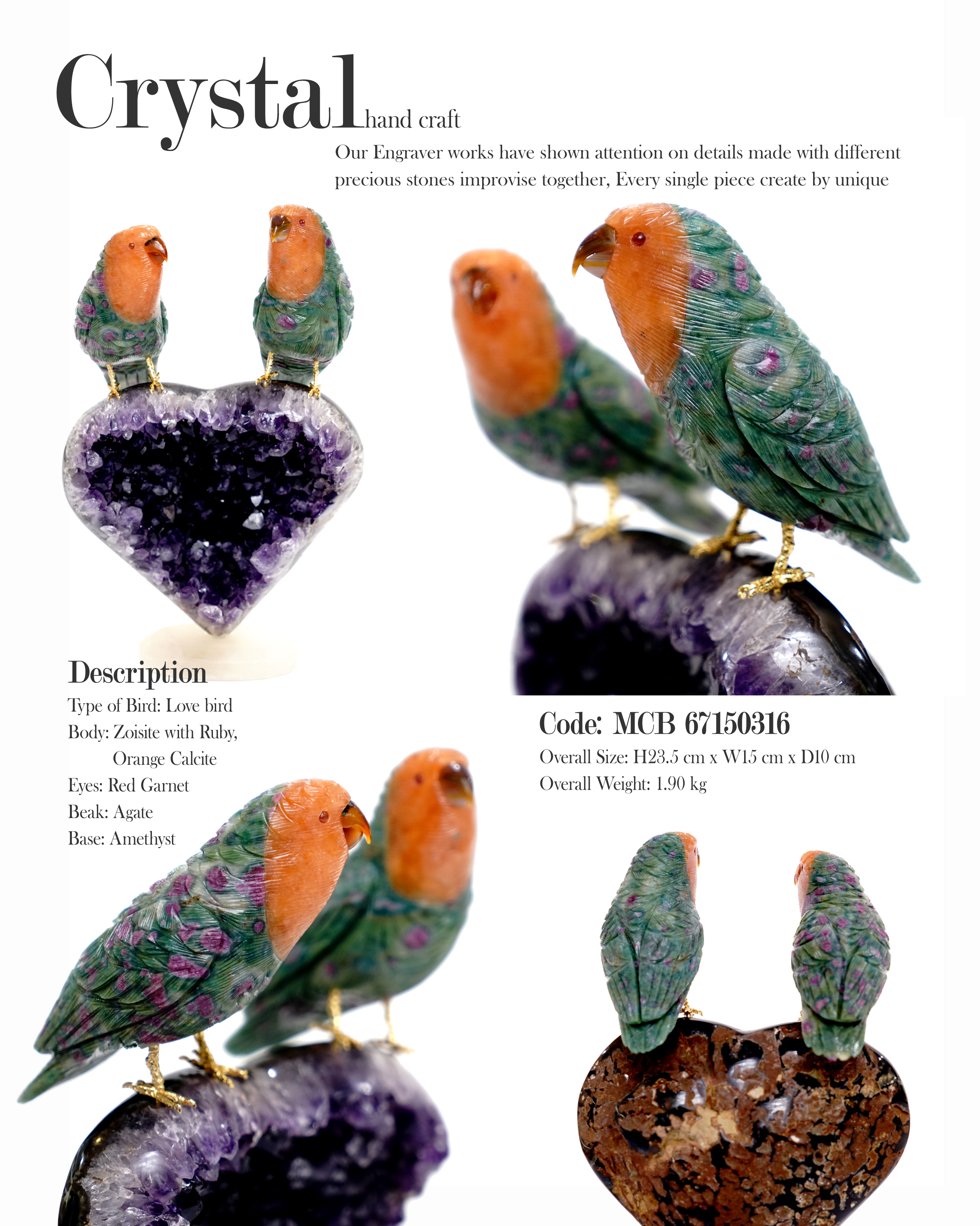 We are developing our business on a global scale, as we purchase gemstone from Rio de Janeiro of Brazil resourcing higher quality natural raw materials and followed by the professional engraver handcrafted with inspired by nature. All our products have become unique.