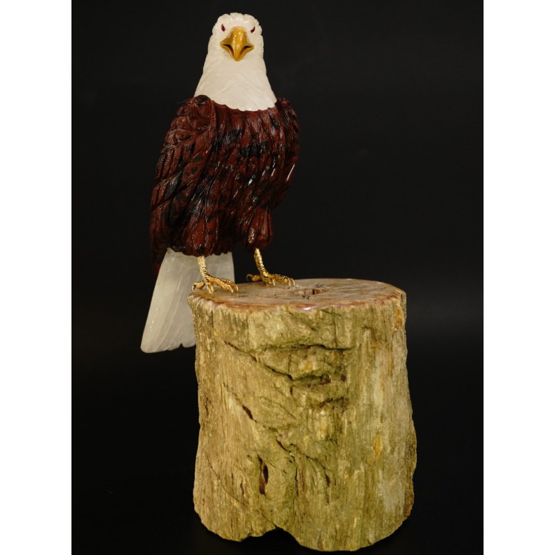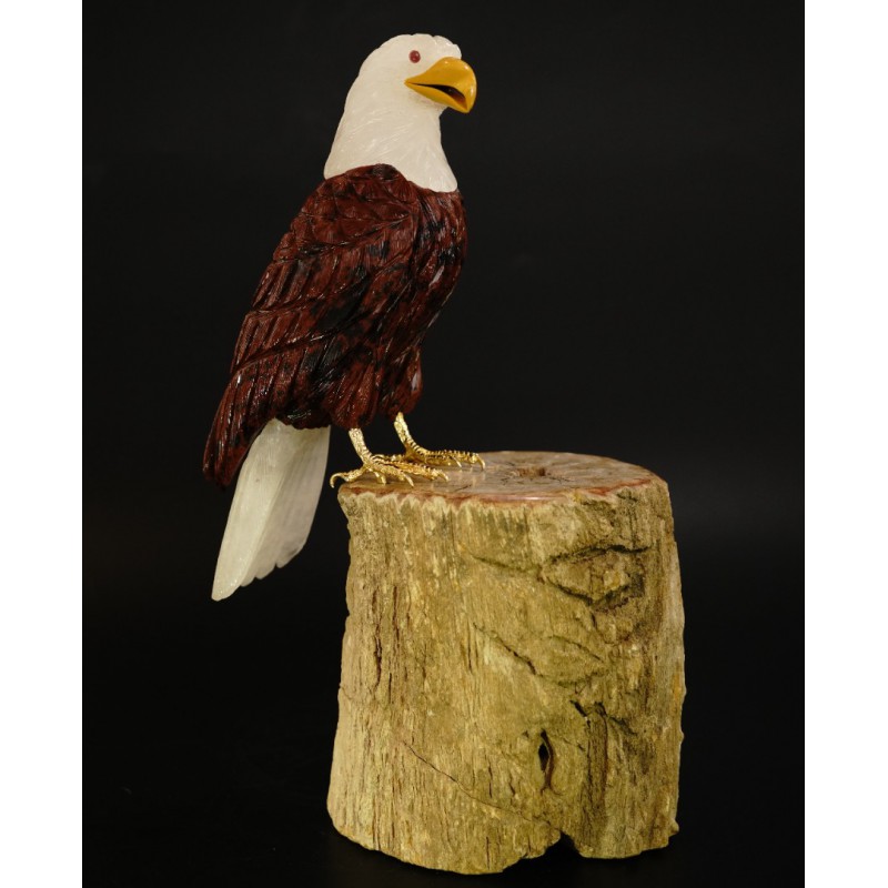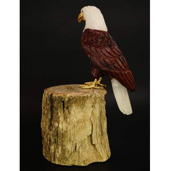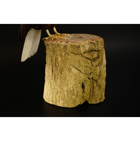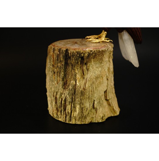 Head/Face/Body : Crystal, Coffee Obsidian Bird's Eyes : Red Garnet Bird's Beak : Yellow Jasper Crystal Base : Fossil Wood