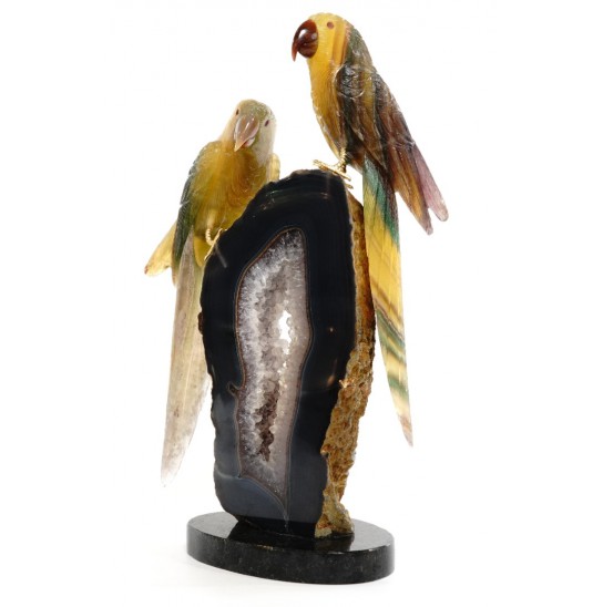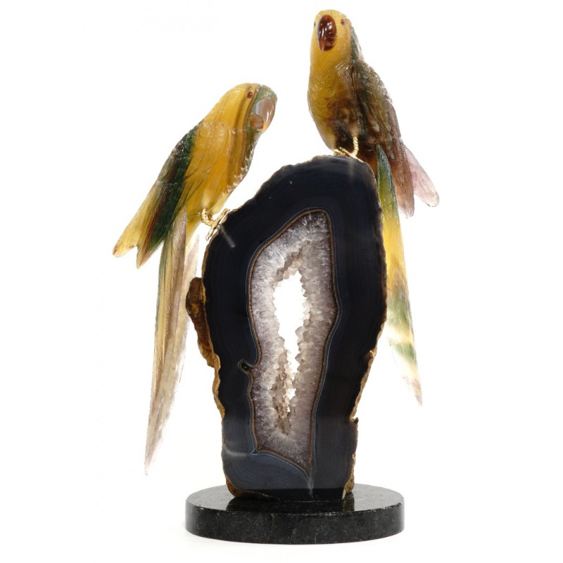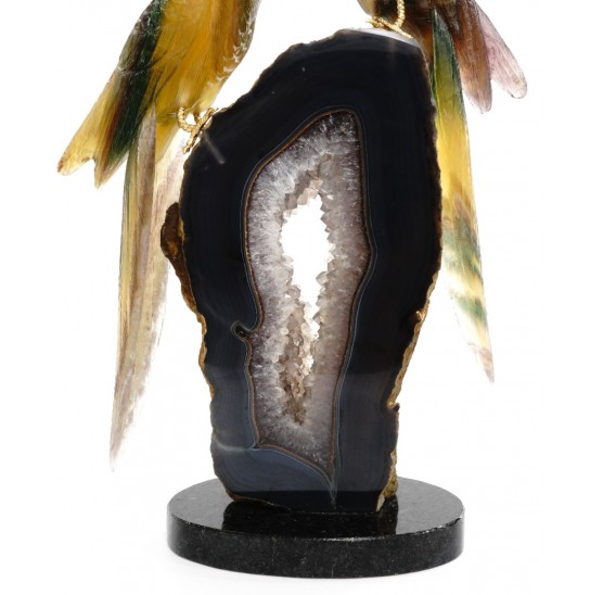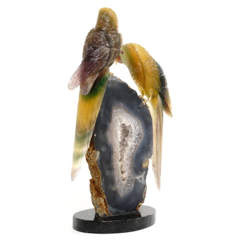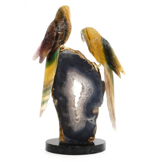 Head/Face/Body : Fluorite Bird's Eyes : Red Garnet Bird's Beak : Agate Crystal Base : Amethyst with Agate