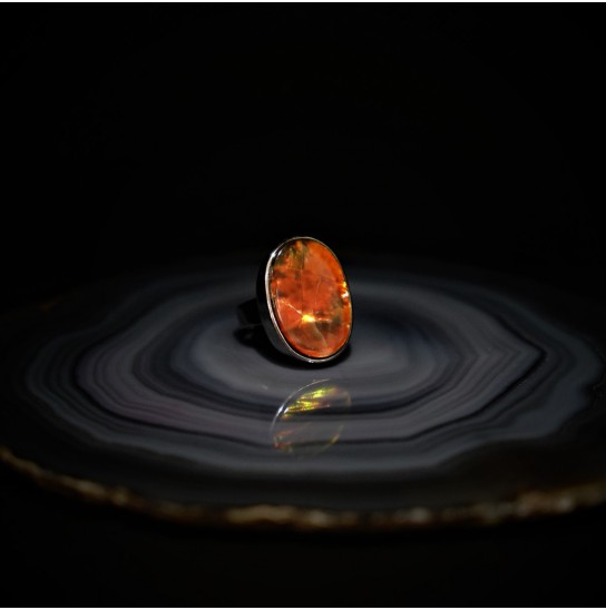A color of displayed in Ammolite ring, There are certain hues, which are derived from a combination of the primary colors, that are the rarest and in highest demand.