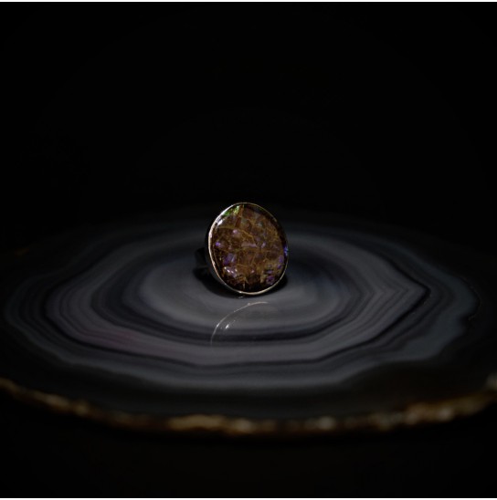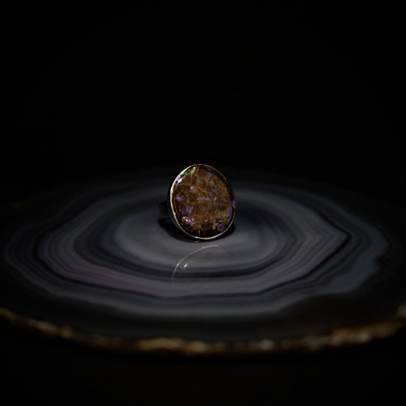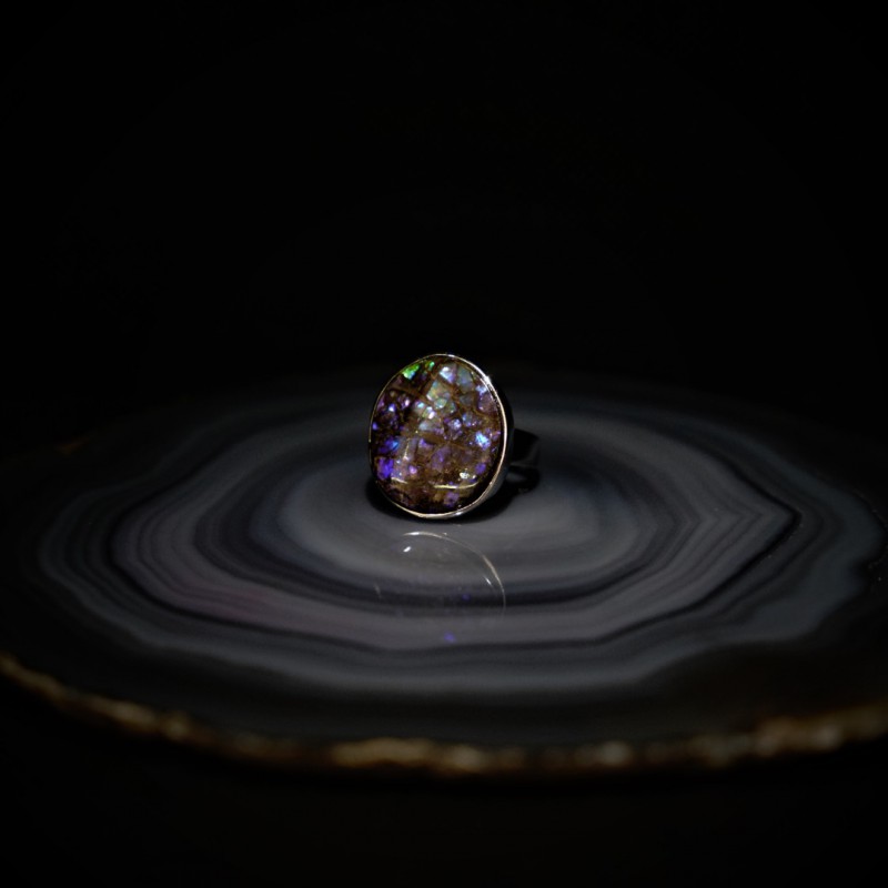 A color of displayed in Ammolite ring, There are certain hues, which are derived from a combination of the primary colors, that are the rarest and in highest demand.