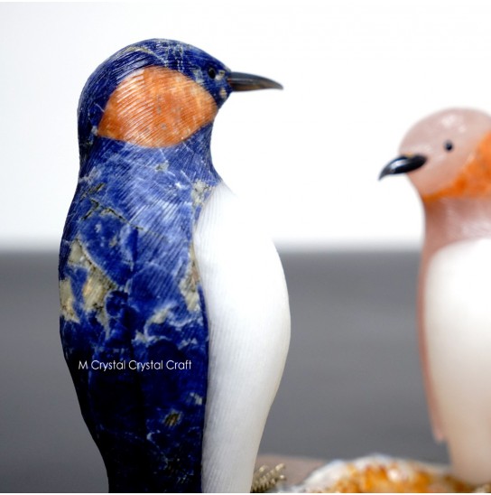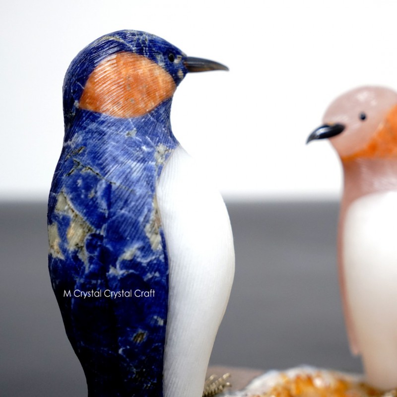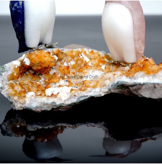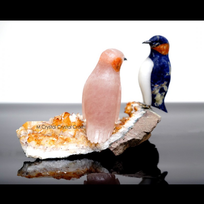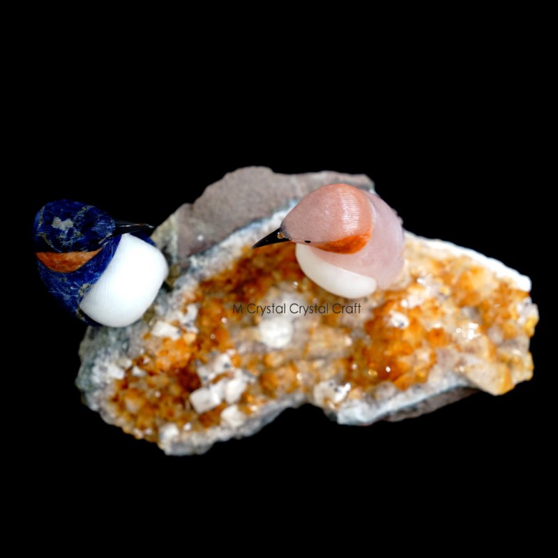 Bird's Eyes: Red Garnet Bird's Beak: Agate Crystal Base: Citrine