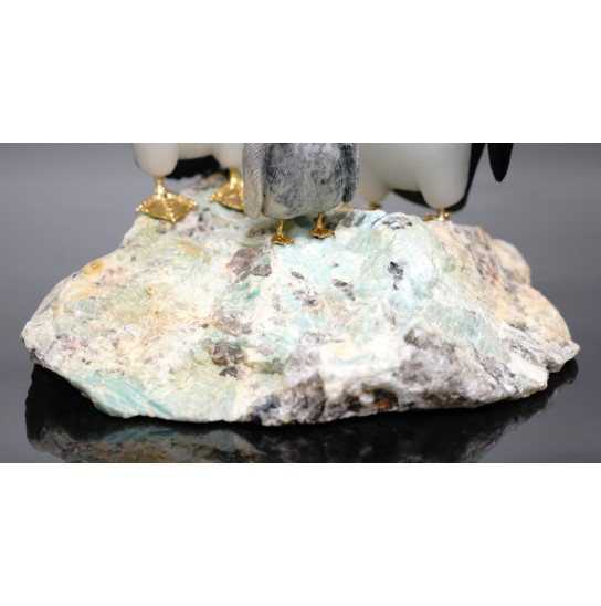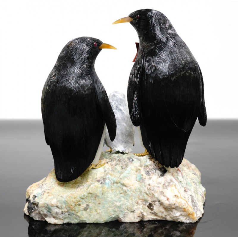 Bird's Eyes : Red Garnet Bird's Beak : Yellow Jasper Crystal Base : Amazonite