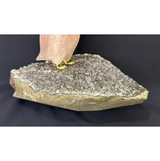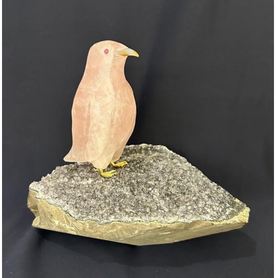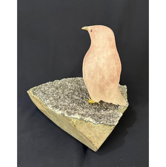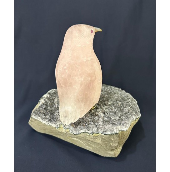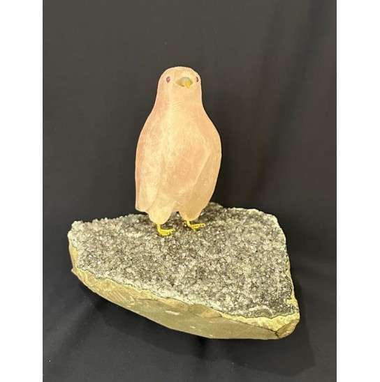 Bird's Eyes : Red Garnet Bird's Beak : Agate Crystal Base : Amethyst